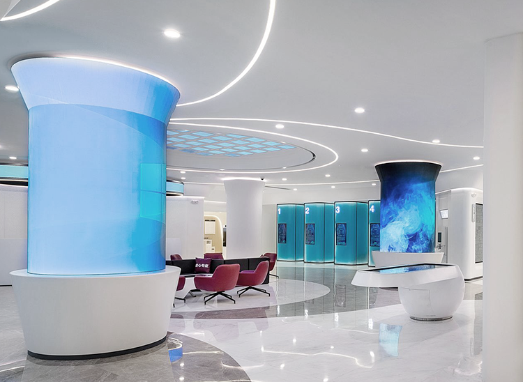 The project is a pilot smart business hall under the world's leading full-service integrated intelligent information service operator. The hall covers an area of 2,000 square meters and is divided into 8 areas, including terminal exhibition and sales area, smart home area, 5G experience area, self-service area and VIP government and enterprise service area.
