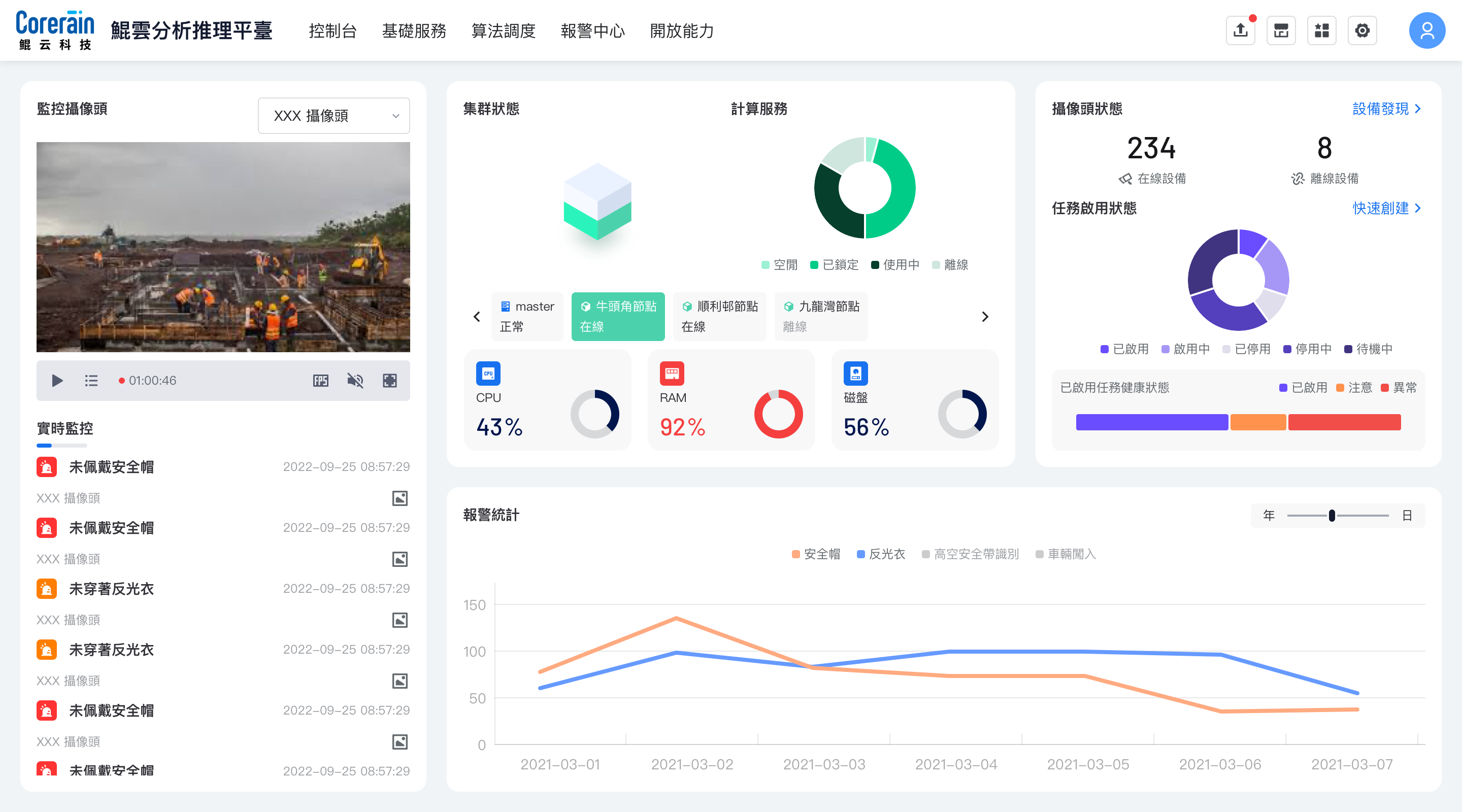 鯤雲(yún)為香港諾和工程有限公司提供算力 + 算法 + 平臺(tái)一體化的智慧工地 AI 影像分析解決方案,攜手為香港 10 餘個(gè)建築工地構(gòu)建 4S 安全管理系統(tǒng)(Smart Site Safety System)。