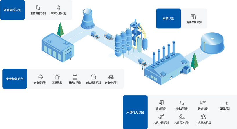 要求化工園區(qū)升級企業(yè)安防系統(tǒng)建設(shè)智能分析平臺,通過AI視頻分析技術(shù),匯聚視頻畫面信息,實(shí)現(xiàn)中控室、重大危險(xiǎn)源現(xiàn)場等重點(diǎn)部位的視頻智能分析,支持實(shí)現(xiàn)火災(zāi)、煙霧、人員違章(中控室脫崗)等進(jìn)行全方位的識別和預(yù)警。
