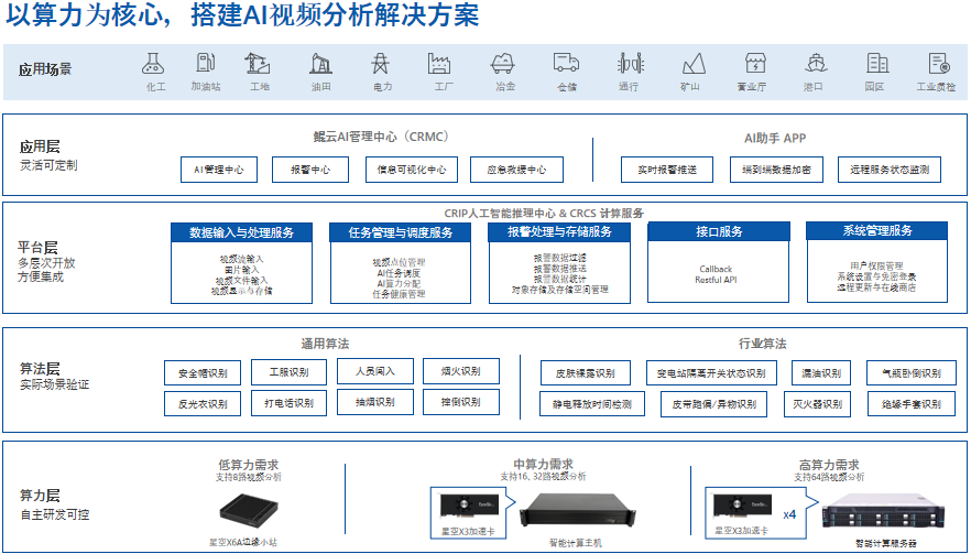 作為一種高效的應用系統(tǒng),視頻行為分析管理系統(tǒng)在安全生產和安防領域中的應用越來越廣泛。但是想要完美的發(fā)揮出視頻行為分析管理系統(tǒng)的作用,需要考慮到系統(tǒng)整體的通用性和易用性和高算力性價比。企業(yè)智能化安全生產由多種智能化系統(tǒng)組成,而企業(yè)應用視頻行為分析管理系統(tǒng)需要較強的技術支持,所以企業(yè)通常在智能化升級時,集成商扮演著極其重要的角色,需要將視頻行為分析管理系統(tǒng)和各大系統(tǒng)集成完整的安全生產信息化管理平臺,在安裝和調試該系統(tǒng)時,集成商需要充分考慮現(xiàn)場環(huán)境和實際需求,并提供全方位的技術和服務支持。一方面,集成商需要選擇合適的硬件設備,確保視頻的流暢傳輸和存儲;另一方面,還需要針對不同的應用場景和監(jiān)測區(qū)域,進行優(yōu)化設置和算法調試,以保證分析精度和穩(wěn)定性。