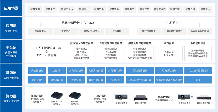 鯤云視頻智能分析系統(tǒng)已經(jīng)廣泛應(yīng)用于各種場(chǎng)合,在化工、加油站、油田、礦山、糧庫(kù)、工地、港口等多個(gè)行業(yè)落地。鯤云致力于為客戶提供AI視頻分析服務(wù),成功幫助1000+企業(yè)智能化升級(jí),實(shí)現(xiàn)更加精準(zhǔn)和高效的管理和預(yù)警,從而保障人員的安全和提高企業(yè)的管理效率。