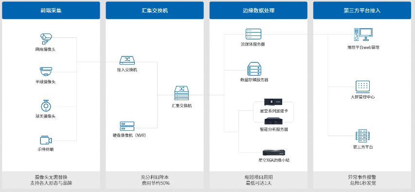 該解決方案依托于先進(jìn)的物聯(lián)網(wǎng)技術(shù),通過人工智能等技術(shù)手段,實(shí)現(xiàn)對糧倉內(nèi)部環(huán)境、糧面異動、人員行為等各個方面實(shí)時監(jiān)測與管理。首先,智能傳感器被安裝于糧倉內(nèi)部,能夠?qū)崟r感知糧食的溫度、濕度、氧氣含量等關(guān)鍵指標(biāo),并將數(shù)據(jù)傳輸至云端,并自動發(fā)出預(yù)警信息。這使得管理人員可以隨時隨地通過智能終端設(shè)備,獲取糧倉內(nèi)部環(huán)境的詳細(xì)信息,及時發(fā)現(xiàn)和解決潛在的問題