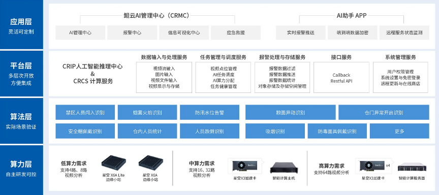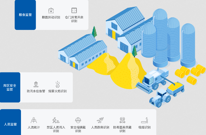 為加速AI在糧庫行業(yè)落地,鯤云科技推出智能化糧倉解決方案,基于人工智能技術(shù),依靠邊緣分析設(shè)備對(duì)糧倉攝像頭采集的視頻數(shù)據(jù)進(jìn)行實(shí)時(shí)識(shí)別分析,利用倉內(nèi)人數(shù)識(shí)別、倉門開關(guān)識(shí)別、糧面異動(dòng)識(shí)別、煙霧火焰識(shí)別等AI算法,實(shí)現(xiàn)可視化遠(yuǎn)程監(jiān)管、風(fēng)險(xiǎn)秒級(jí)預(yù)警、精準(zhǔn)化應(yīng)急調(diào)控,助力“科技儲(chǔ)糧、綠色儲(chǔ)糧、安全儲(chǔ)糧”,將糧食安全真正落到實(shí)處。