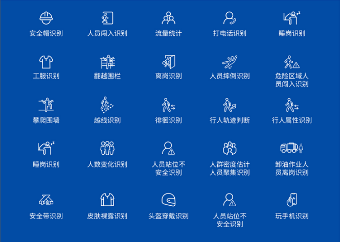 任何一個(gè)異常行為都有可能引發(fā)安全事故,為企業(yè)安全生產(chǎn)能夠得到保障,盡可能地將危險(xiǎn)風(fēng)險(xiǎn)控制為零。鯤云科技提供了多種自主研發(fā)的行為識(shí)別算法:抽煙識(shí)別、打電話識(shí)別、人員闖入識(shí)別、安全帽識(shí)別、工衣工服識(shí)別、人員睡崗識(shí)別、周界入侵、人員離崗識(shí)別、玩手機(jī)識(shí)別、未戴口罩識(shí)別、人員摔倒識(shí)別等人員行為分析算法,助力企業(yè)在人員行為安監(jiān)工作上成功減員降本,實(shí)現(xiàn)全方位智能化識(shí)別。