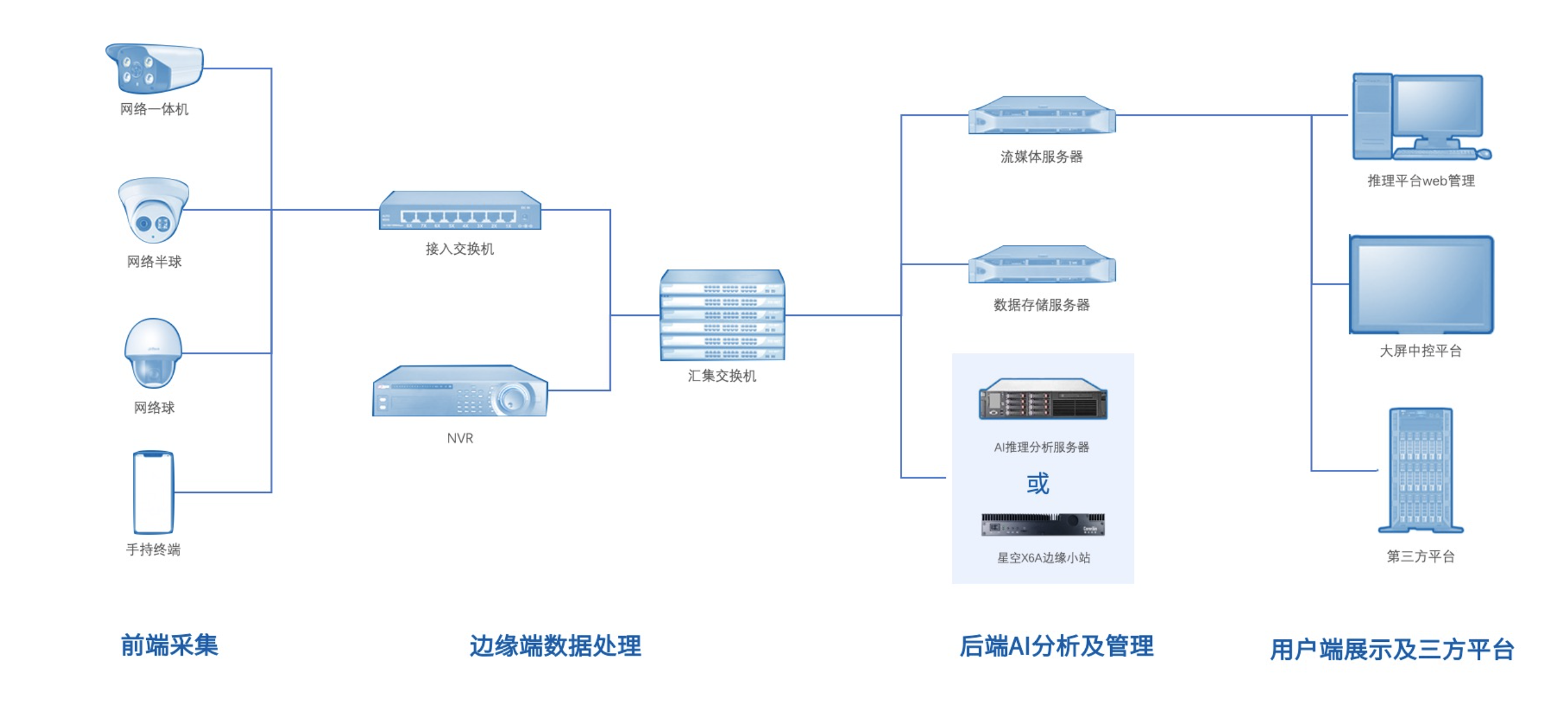 鯤云AI視頻分析解決方案提供8路、16路、32路、64路等多種算力規(guī)格算力硬件可選,支持不同規(guī)模視頻監(jiān)控分析路數(shù)。算力硬件全部采用鯤云自研的全球首款數(shù)據(jù)流架構(gòu)AI芯片,芯片利用率高達(dá)95.4%,對(duì)比GPU,算力性價(jià)比得到數(shù)倍提升。