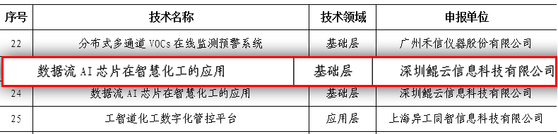 3月29日,在“2023中國化工園區(qū)可持續(xù)發(fā)展大會(huì)”上,中國石油和化學(xué)工業(yè)聯(lián)合會(huì)正式發(fā)布“智慧化工園區(qū)適用技術(shù)目錄”,鯤云科技的“數(shù)據(jù)流AI芯片在智慧化工的應(yīng)用案例”成功入選。