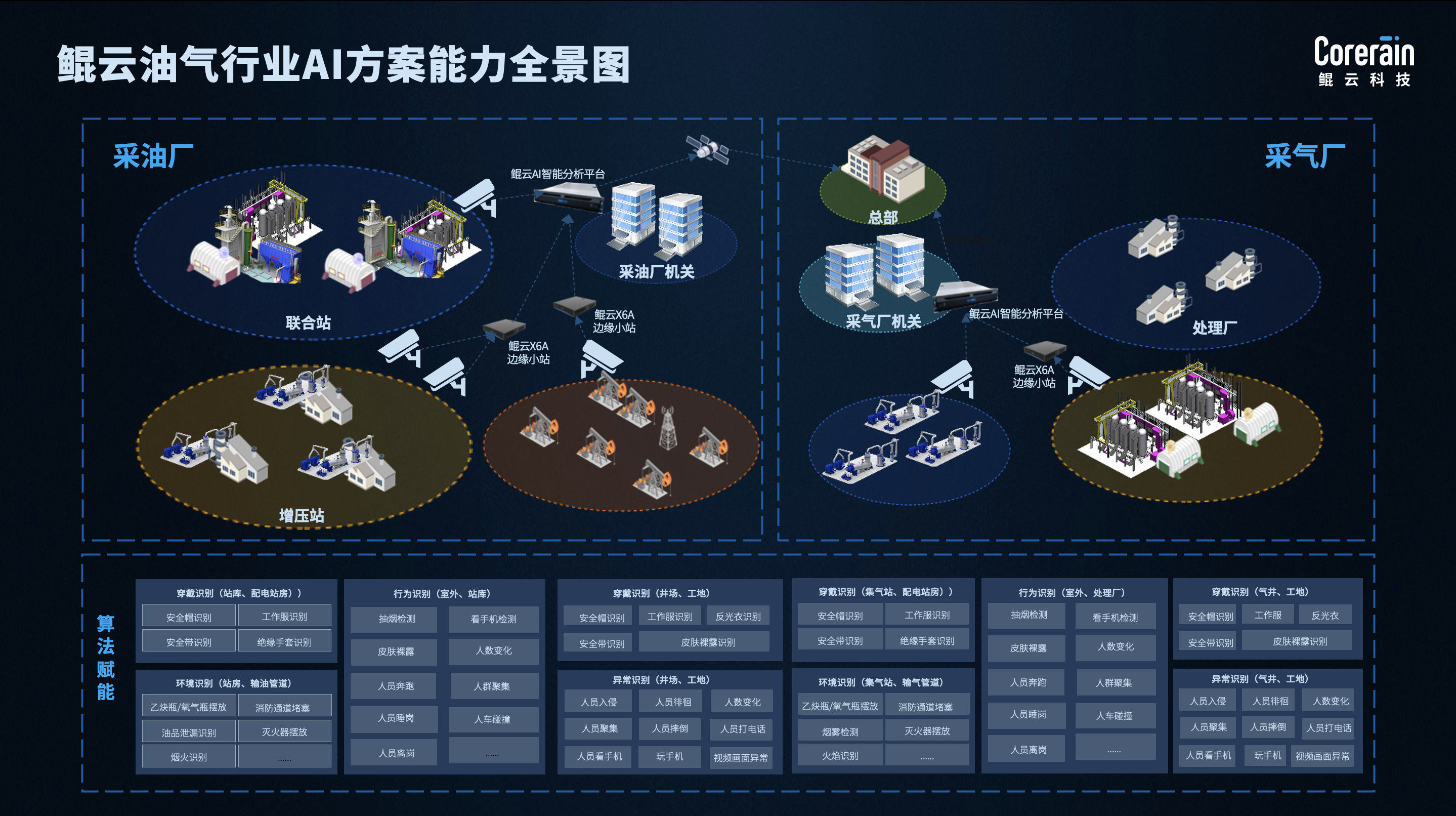 在“十四五”國(guó)家安全生產(chǎn)規(guī)劃的大背景下,推動(dòng)油氣田安全智能化轉(zhuǎn)型的"安眼工程"(安全生產(chǎn)智慧眼可視化智能化識(shí)別工程)是國(guó)家能源安全生產(chǎn)的重要戰(zhàn)略,鯤云智慧石油石化AI視頻解決方案正在助力"安眼工程"建設(shè),為油氣田企業(yè)提供從底層算力硬件支持、行業(yè)垂直算法到可視化管理平臺(tái)的一體化方案,彌補(bǔ)現(xiàn)場(chǎng)人力資源短缺和中心監(jiān)管力量的不足、加強(qiáng)現(xiàn)場(chǎng)風(fēng)險(xiǎn)監(jiān)測(cè)智能化提升。