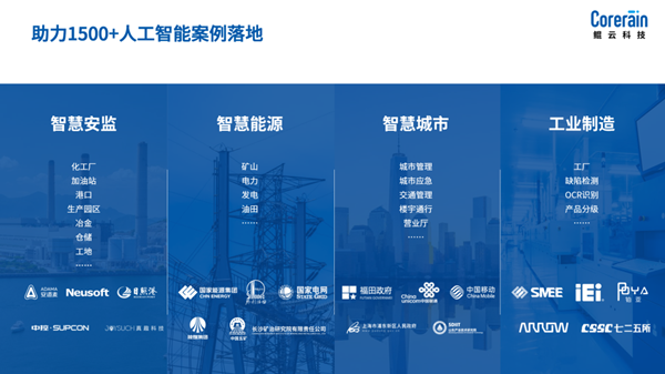 除了技術層面的突破領先,蔡權雄博士還分享了鯤云科技如何基于可重構數據流架構技術賦能多產業(yè)數智化轉型,率先實現大規(guī)模商業(yè)落地。近年來我國實體經濟與數字經濟加速融合發(fā)展,AI 算力需求日益增長,鯤云科技針對各行業(yè)痛點及需求,為 10 余個行業(yè)提供算力、算法、平臺一體化的 AI 視頻分析解決方案,成功落地 1500 多個智能化項目,覆蓋智慧安監(jiān)、智慧能源、工業(yè)制造等多個領域,打通了可重構數據流芯片落地的商業(yè)模式。