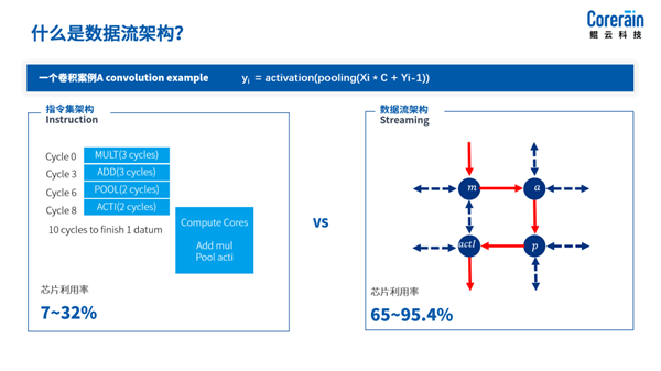 后摩爾時代,為打破指令集架構帶來的芯片性能桎梏,全球涌現出多種基于芯片架構的創(chuàng)新探索。蔡權雄博士提到,不同于業(yè)內基于開源架構的芯片設計優(yōu)化思路,鯤云科技從芯片的底層架構革新,自研開創(chuàng)性的可重構數據流架構技術。相對于傳統(tǒng)指令集架構下的 AI 芯片,鯤云推出的可重構數據流 CAISA 芯片突破了馮·諾依曼內存墻瓶頸及制程工藝逐步放緩的制約,依托數據流的流動次序控制計算執(zhí)行次序,數據計算與數據流動重疊,最大化利用芯片計算資源,最高可實現 95.4%的芯片利用率。根據公開的測試數據顯示,通過自研芯片架構 CAISA 3.0 和自研編譯器 RainBuilder,一顆 28nm 工藝的 CAISA 芯片相較于一顆 16nm 的 GPU 芯片,CAISA 芯片在芯片成本為 1/3 的情況下,可以實現最高 4.12 倍實測算力的提升,提供高性能、低延時、高算力性價比的 AI 加速方案。